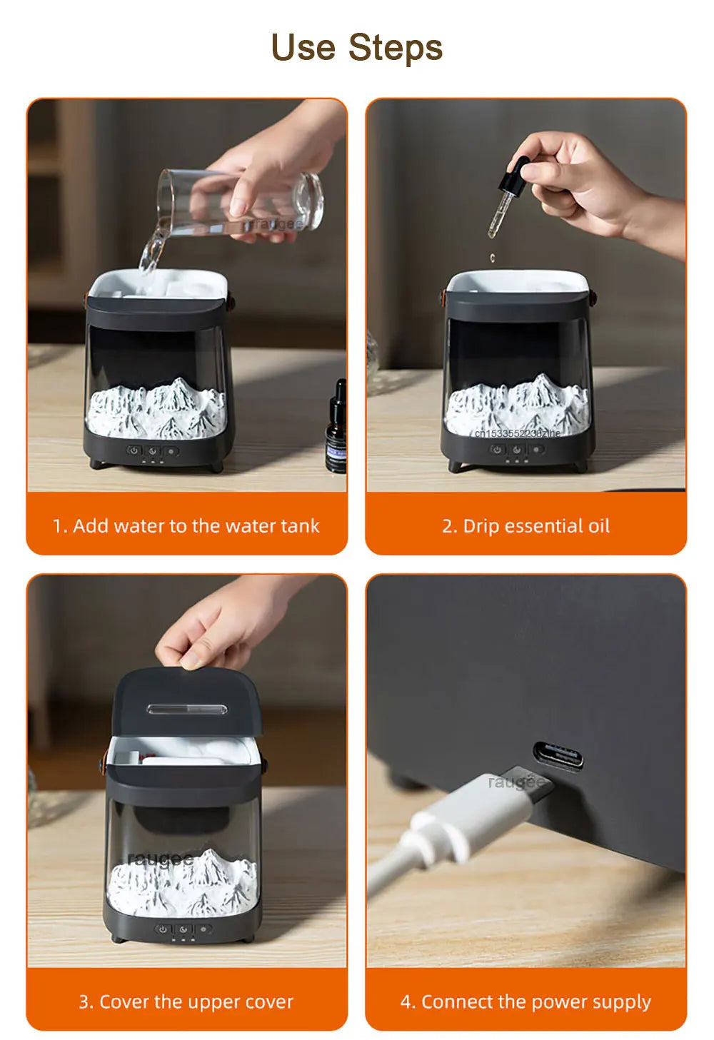5.SUPER QUITE & AUTO SHUT-OFF: Our aroma humidifier featuring an ultra-quiet operation mood about 25dB peaceful environment to help soothe your mood, relieve stress & improve your sleep quality. And, the auto shut off function, help the raugee flame diffuser to stop working once lack of water, making it very safe and reliable.